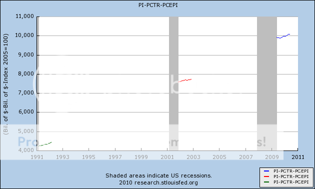 Although it is difficult to tell from the graph, real income was stronger in the first year of the recovery from the 1990 recession than at present.
